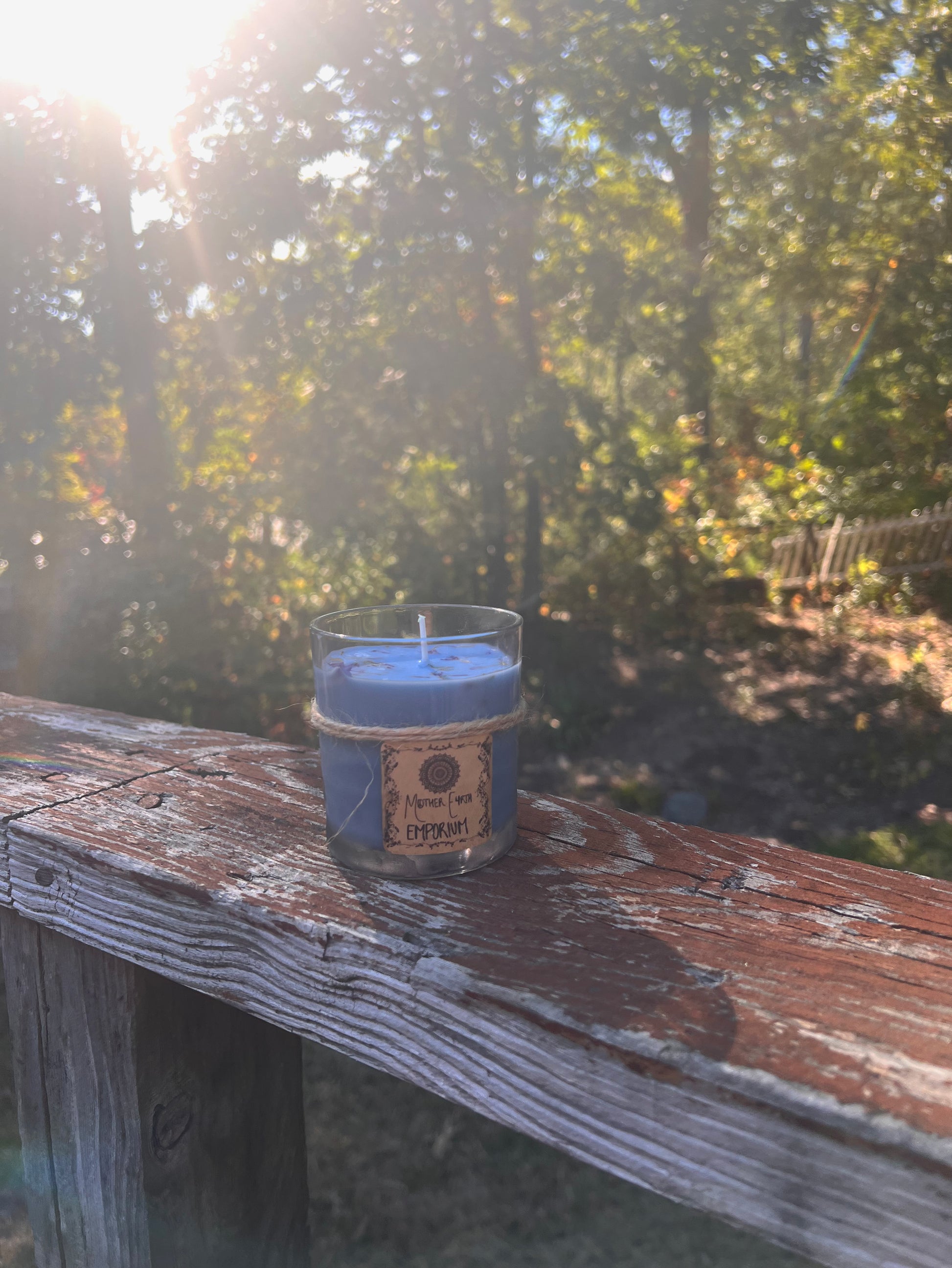 Blue Lotus Amber Candle//Thrifted Glass Collection